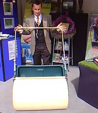 Perhaps the most useful launch onto the market is the Bowdry by Bowcom at Bridgwater, Somerset. The pushable machine clears standing water from patios or even grass, with its 30in replaceable, foam-coated front roller. Liquids are squeezed by a bar into the rear hopper, which can then be emptied down a drain through a plug in its base. This machine will set you back £495, but the company is making a smaller 15in model which will have a lift-out tank and will cost around £195. Tel: 01278 427582