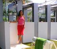 This modern garden designed by Stephen Woodhams, contained a sunken bath and outdoor shower which Lili tested out. "The garden is beautiful, so calm and Zen," she said. |