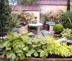 "A Garden in Homage to Le Notre" (MA24) contains a delightful, very busy box parterre on two levels interrupted by gentle jets of water, and other ideas worthy to be taken from his copybook including a tall allée, or walkway of clipped bay. For those with a more modernist bent the blue glass and helxine chequer board pattern in Bart's City Life Saver's garden "Chaos and Rhythm" (MON11) may easily appeal.