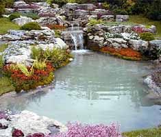 If your heart is set upon a rockery complete with cascade follow the example of the "Cumbria in Bloom" garden (RGB4) created by Peter Tinsley & Sons. It illustrates that rockeries only work if you spend thousand of pounds on huge stones laid to look like natural strata, with water crashing down a multi-coursed cascade, propelled by a heavy-duty pump. So often, amateur attempts end up by looking like a heap of stones. The planting, with large and colourful drifts of plants such as rhodohypoxis and garden pinks, can only be copied too.