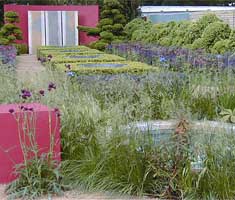 Those of you who prefer more traditional garden styles would be alarmed by the great deal of post-modernist design present this year; gardens were groaning with concrete, glass and stainless steel. I can easily see these thought-provoking gardens belonging to a modern public building or in an atrium, but cannot see them in an average domestic setting. But they do make you sit up and think which is, presumably, their raison d'être.